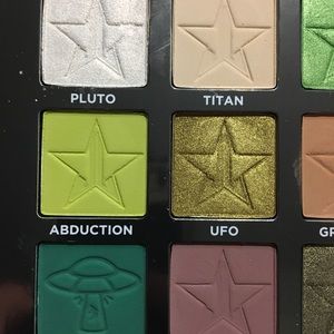 Jeffree Star Cosmetics Alien Collection. Collection is discontinued and items are collectors items, reflecting the price. Bundle includes; Alien Palette (swatched) (no box). Alien White Glitter travel bag (used) (see pictures). Alien Velour Liquid Lip (swatched & sanitized) in the shade Jeffree Who?Please look at the photos carefully to review usage. By purchasing you acknowledge and agree to the usage shown. Price is firm on this bundle, offers will be declined. NOT SEPARATING AT THE MOMENT!