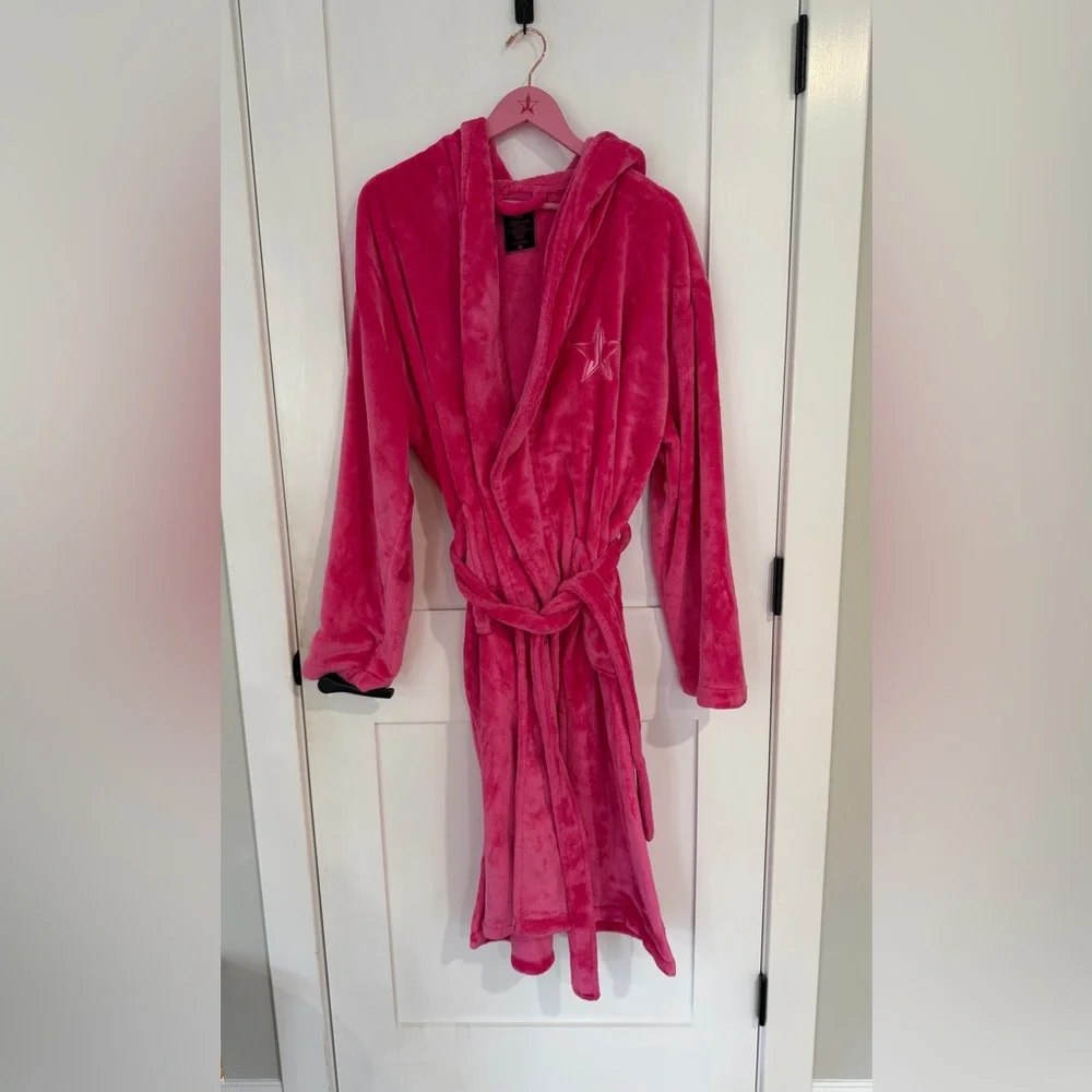 This luxurious robe is so soft you'll never want to take it off! Perfect for lounging around the house or wearing while getting ready! Includes matching pink wooden Jeffree Star Cosmetics hanger with rose gold hook.