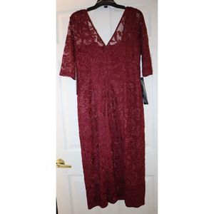 JS Collections Sz 12 Maroon Mesh Lined 3/4 Sleeve Midi Cocktail Sheath Dress