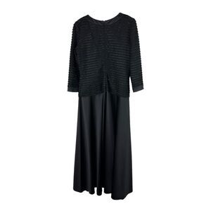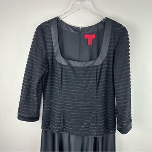 JS Collections Black Satin Gown W/Square Neckline and Subtle Sparkle Top Sz 14