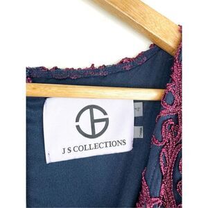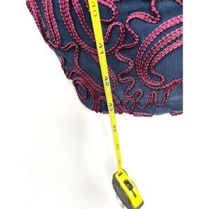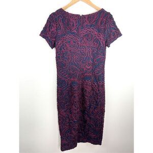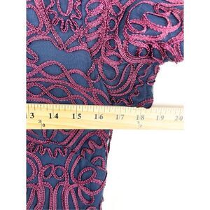JS Collections SHORT SLEEVE SOUTACHE & MESH COCKTAIL DRESS in navy and purple