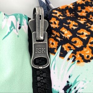 Women's Multi Print Two-Piece Reversible Bikinis from JSK. Single strap, zipper closure top.