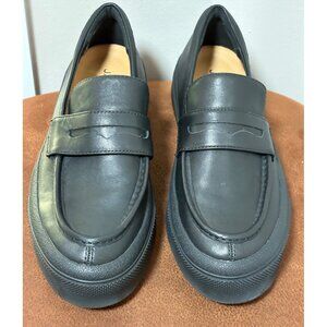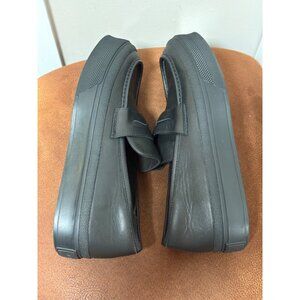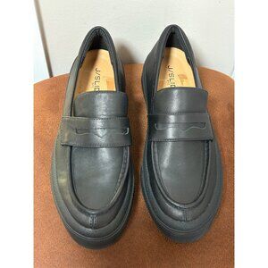 J/SLIDES BLACK LEATHER PLATFORM LOAFERS SLIP ON COMFORT WOMENS SIZE 7.5 CASUAL