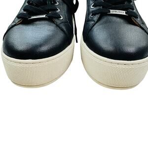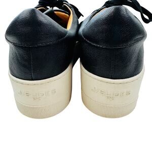 Stylish black leather sneakers with white platform sole. Lace-up design. Perfect for casual wear.