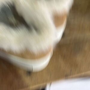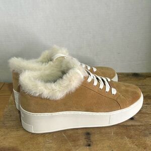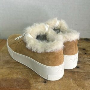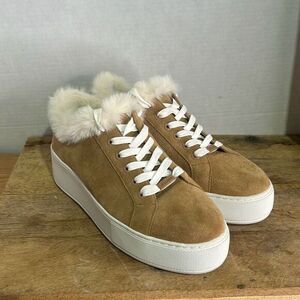 :::Fur embellishment on the collar adds a sweet, luxe touch to this high platform sneaker.