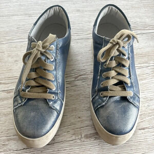 J/SLIDES Metallic Blue Canvas Platform Sneakers 9