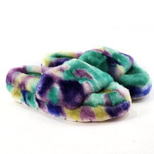 J/SLIDES NWOB Bryce Genuine Shearling Platform Slipper Chunky Fuzzy Slide Open Toe Tie Dye Real Fur Colorful Arch Support Comfort