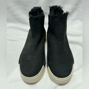 J/SLIDES NYC Black & White Suede Faux Fur Ankle Boots Size 6.5 - good used condition