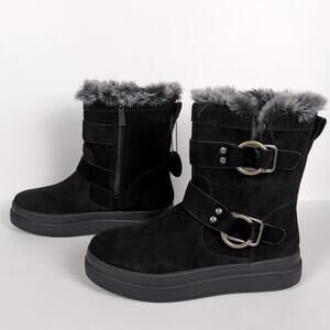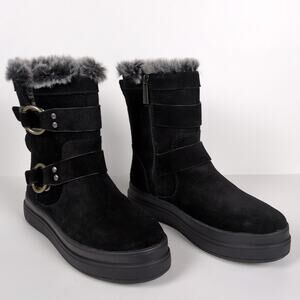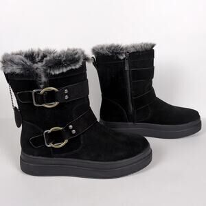JSLIDES Nelly Waterproof Suede Platform Boots Black Faux Fur Lining Women's 7