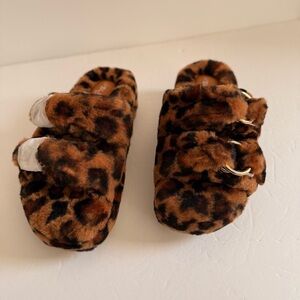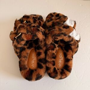 JSLIDES Shearling Animal Print Slippers slide Women Size 6