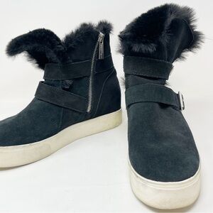J/SLIDES Women’s Black Faux Fur Lined Winter Ankle Buckle Booties Size 8
