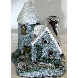 JSNY Resin Winter Gray Brick Cottage House Display Decor Christmas Flowers
