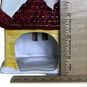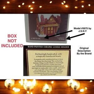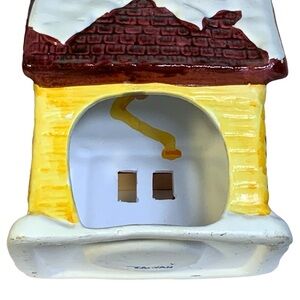 JSNY Vintage Holiday Schoolhouse Candle Holder Hand Painted Porcelain Ceramic