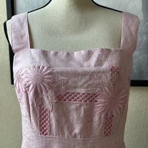 JSONG Collection 100%Linen Dress with intricate floral embroidery.