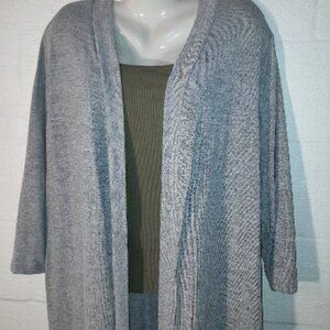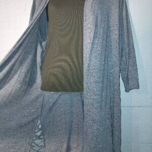 JSP Woman Plus Size 3X Women's Duster Cardigan Sweater Criss Cross Heather Gray