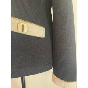 J.S.S knit wear jacket blazer small black cream wool blend button up classic
