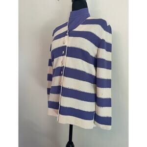 J.S.S knit wear jacket set small purple cream wool blend button up vintage