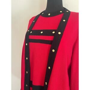 J.S.S knitwear womans jacket suit petite Sm red/black wool blend classic luxury