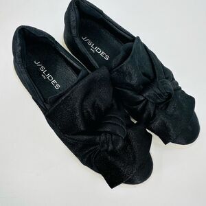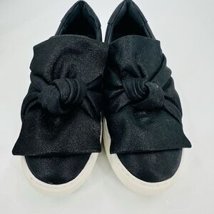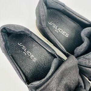J Slides AUDRA Bow Top Sneaker Slip On Platform Black Leather Size 6.5 Chunky