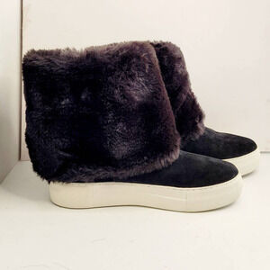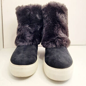 Women's Sneaker Boot J/Slides Apple Black Suede Faux Fur Side Zip Upper Size 7.5