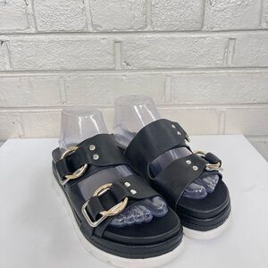 Step out in style with these chic black sandals featuring elegant silver accents. Perfect for any occasion, these sandals offer both comfort and fashion.