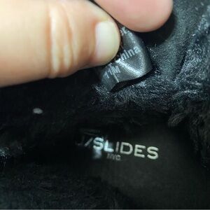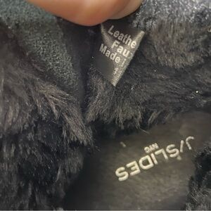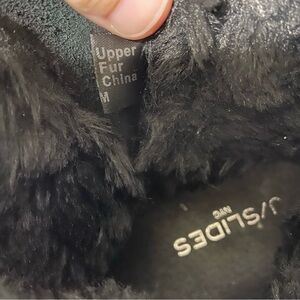 J/Slides Black Ankle Chukka Bootie Women 11M Leather Suede Upper Faux Fur Zip Closure