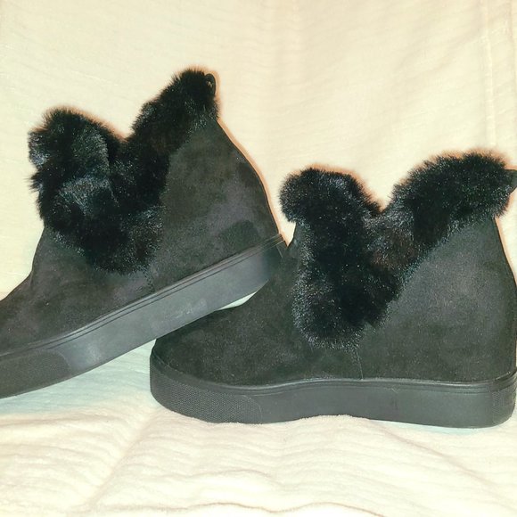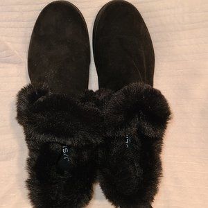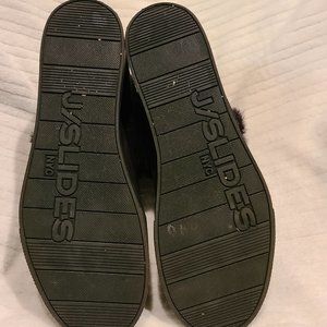 Super cute J/Slides Black with furry lining wedges. Only worn a few times. Excellent used condition. Womens size 8.