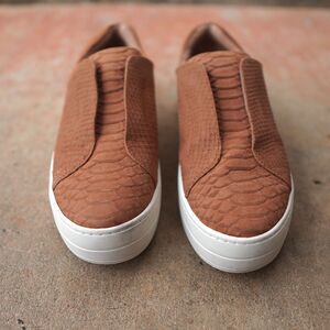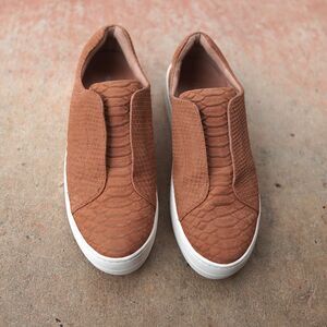J/Slides Heidi Tan Croc Embossed Slip On Sneakers Size 10 Platform Comfort