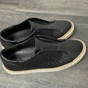 J/Slides Kayla Black Woven Leather Espadrille Sneakers size 6.5
