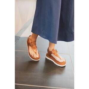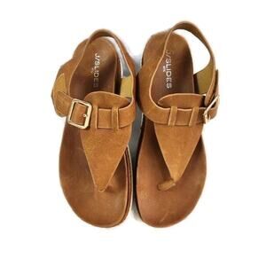 J/Slides NYC Becky Women's Brown Leather Thong Toe Sandal 9.5