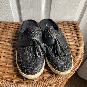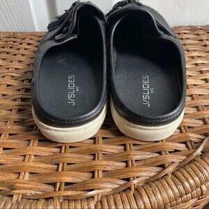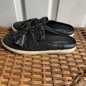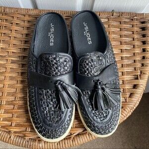 J/Slides NYC CARISSA Woven Leather Slip-on Black Mules Open Back Sneakers sz 9