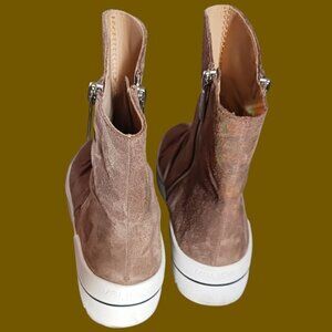 J/Slides NYC Suede Leather Upper Platform Ankle Boots Size 7 tan color