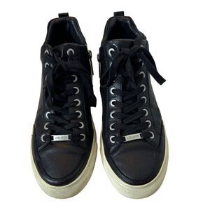 J/Slides NYC Womens Leather High-Top Sneakers Black With White Sole