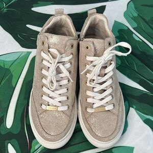 J Slides NYC sneakers, soft, gold sparkle excellent use condition no damage