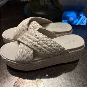 J/Slides QUIVER Bone Raffia Platform Sandals New