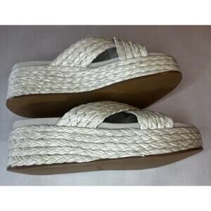 JSlides Quiver Bone Raffia wedge Sandal Women's Size 10 M white