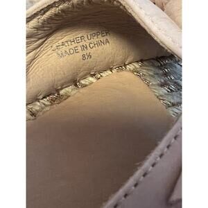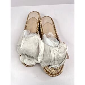Gorgeous! Leather upper. 1” jute platform with metallic threads, soft pink color