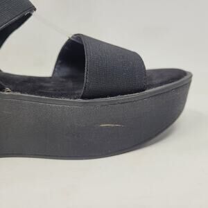 J/Slides Sandals 10 Black Wedge Platform Slingback Slides Chunky Strappy 90s NEW