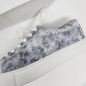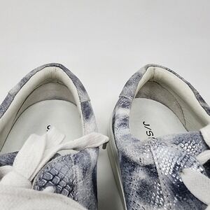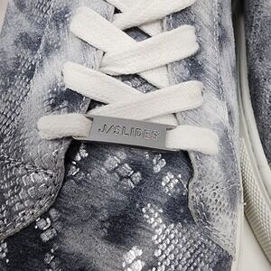 J/Slides Sneaker Women 9.5M Lucki Silver Metallic Snakeskin Leather Lace-up Comfort Stud/Spike Heel