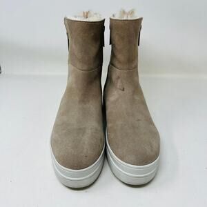 J/Slides Suede Leather Ankle Boots Boot Shoe Casual Side Zip Tan Olive - 7.5