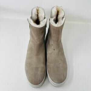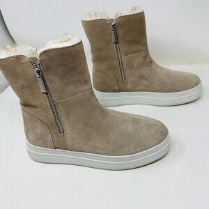 J/Slides Suede Leather Ankle Boots Boot Shoe Casual Side Zip Tan Olive - 7.5