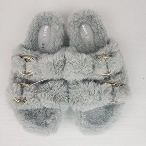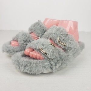 J/Slides Urban Sport Womens Slippers BABEE Gray Faux Fur Slide Size 8 M