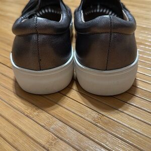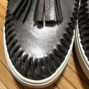 AZTEC : Our very popular Boho inspired moc sneaker is effortless cool personified.Choose: tawny tan, black, spanking white and pewter leather; tan,sand, black, burgundy or navy suede;or finally, leopard pony hair.1.5” rubber platform, leather lined double stretch gore slip-on.Runs slightly roomy – go down ½ size if you are very narrow.Removeable gel insert.