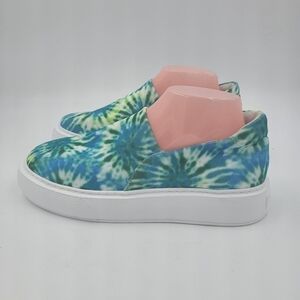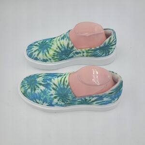 J/Slides Women's Blue Green Tie-Dye Dusty Slip-on Casual Canvas Sneaker Size 8.5