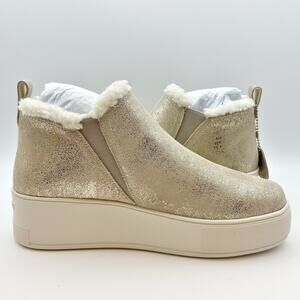 J/Slides Women's Magic Pull On Platform Sneaker Size 7.5 Gold Metallic WP NIB