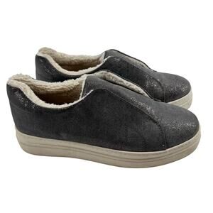 Get your daily steps in with these adorable sneakers. Slip-on sneaker featuring plush faux-fur lining and memory foam cushioning. 1 1/2" platform. Memory foam cushioning. Removable insole with arch support.