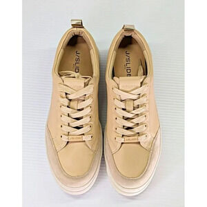 J/Slides Women's Nataly Platform Sneakers Light Sand Leather Size 8 (MSRP $169)