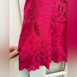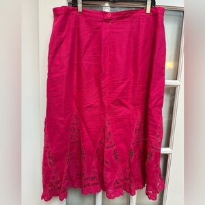 JSong Collection 100% Linen Lace Embroidery Midi Length Pink Skirt Size 16 XXL