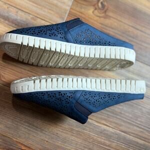 JSport Floral Mules woman’s sz 7M. Navy blue, floral cutout pattern.