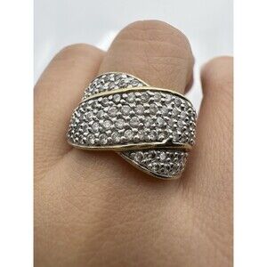 J&T 925 Sterling Silver 14k Gold Vermeil C Z Cross Ring Size 7
